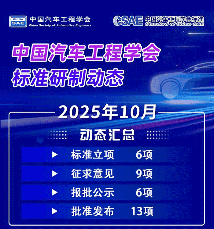 中国汽车工程学会标准研制动态(2025年10月)