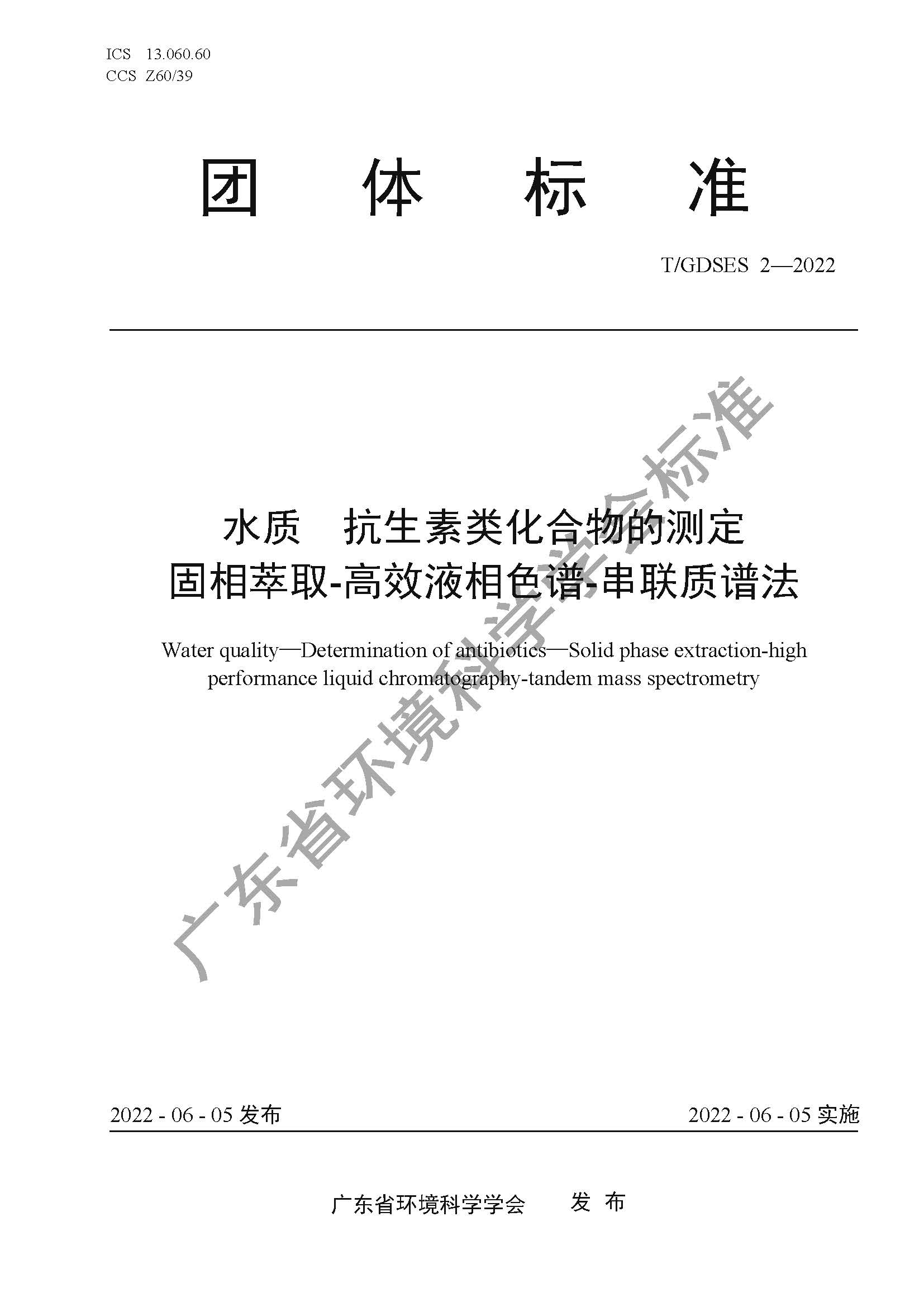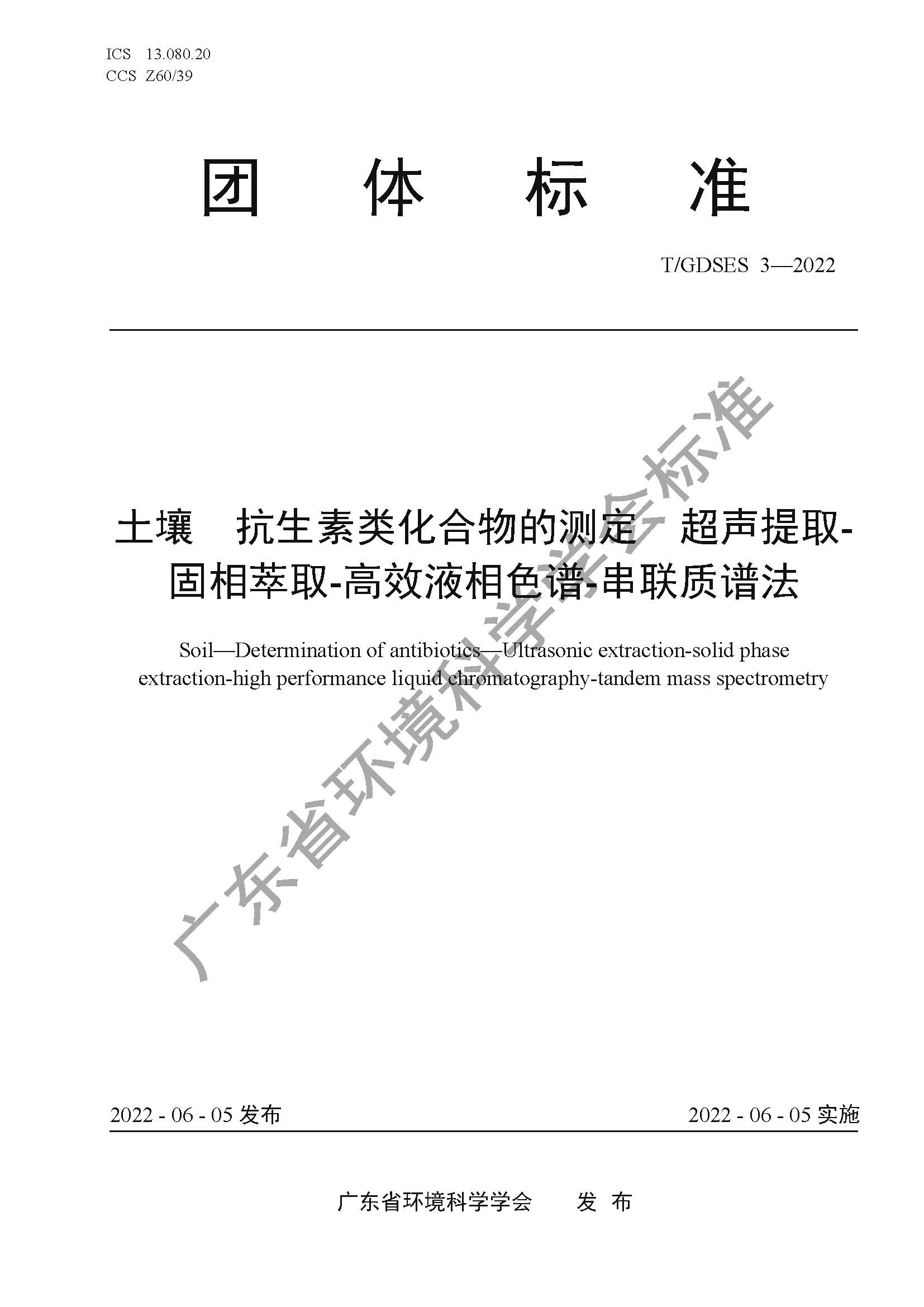 根据《团体标准管理规定》(国标委联〔2019〕1号)和《广东省环境科学学会标准管理办法(试行)》(粤环学〔2020〕7号)的相关规定,广东省环境科学学会批准《水质 抗生素类化合物的测定 固相萃取-高效液相色谱-串联质谱法》(T/GDSES 2—2022)、《土壤 抗生素类化合物的测定 超声提取-固相萃取-高效液相色谱-串联质谱法》(T/GDSES 3—2022)标准,现予发布。 以上标准自2022年6月5日起实施。 特此公告。