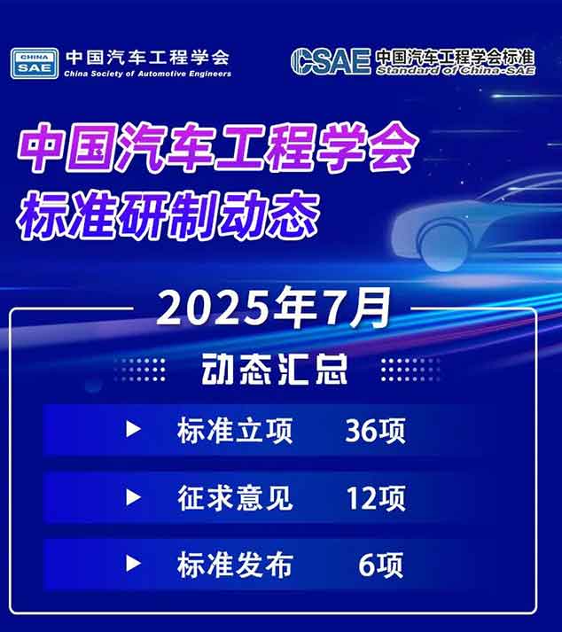 中国汽车工程学会标准研制动态(2025年7月)